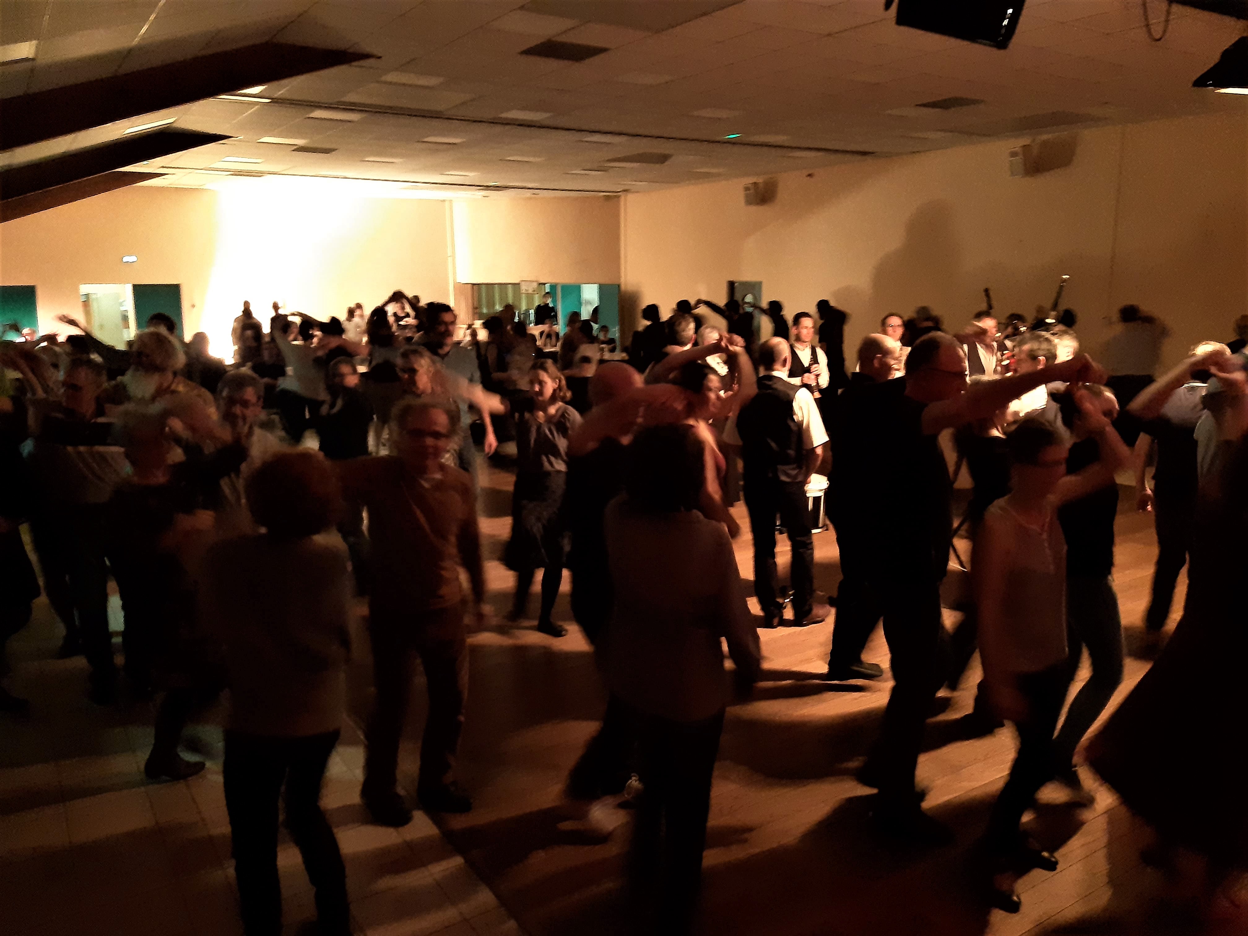 En soirée, les danseurs et non danseurs ont apprécié MA PETITE qui a proposé pendant près de deux heures un répertoire inhabituel pour nous, rond de Barbatre, marchoises, avant deux mais aussi des airs plus connus, rond de l’ile d’Yeu, branle de Noirmoutier, polka, valse, mazurkas, scottish. La rythmique des deux Maxime , percu et diato, les envolées lyriques de Thomas au saxo et la voix envoutante de Perrine ont enthousiasmé et parfois surpris les danseurs. Ma Petite est un groupe composé de musiciens très talentueux et fort sympathiques.
